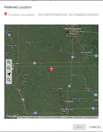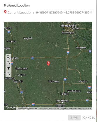To change the location of the Radar a user can click on the Settings icon in the top right of the widget to open the Preferred Location window, in the same way as the Weather Forecast wideget in the example above.