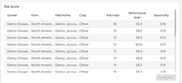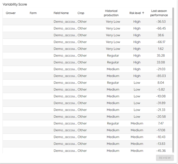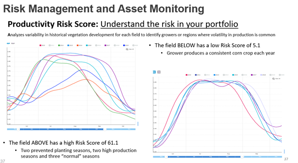 - Lower than 20 = low risk index = consistent field, no variability on the crop development over the last years