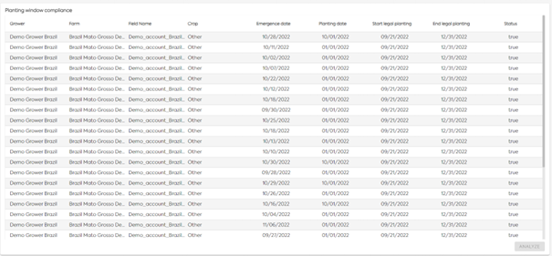 - We compute a status per field if the planting date & emergence date are in the legal planting window : true / false