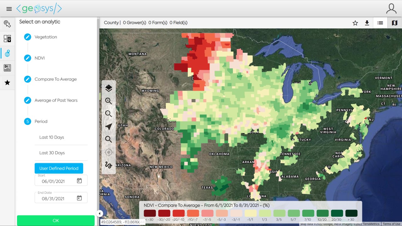 Follow the five steps in the "Select an Analytic" menu and click OK to load the map.
